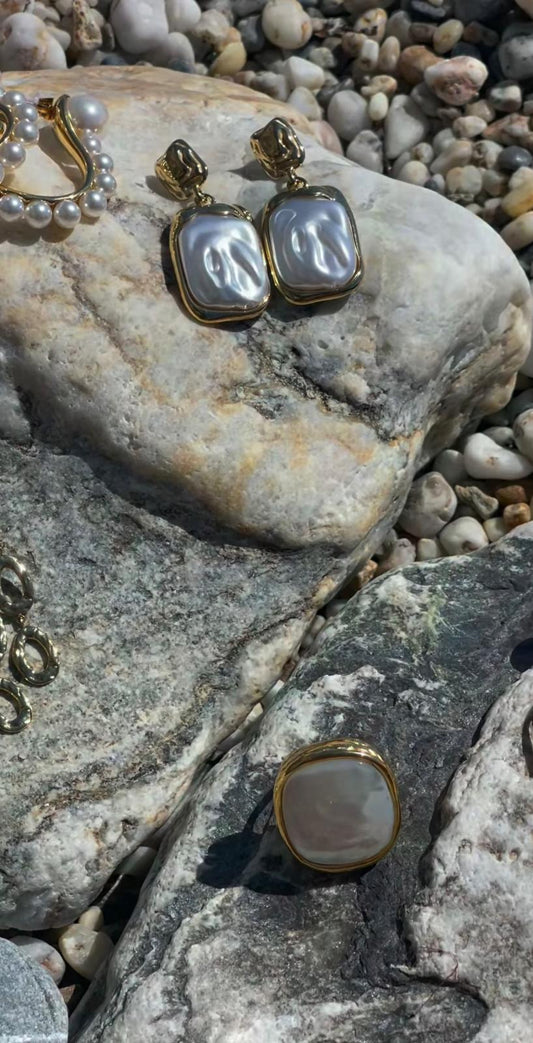 Venetian Square Pearl Drop Earrings – 18k Gold Plated